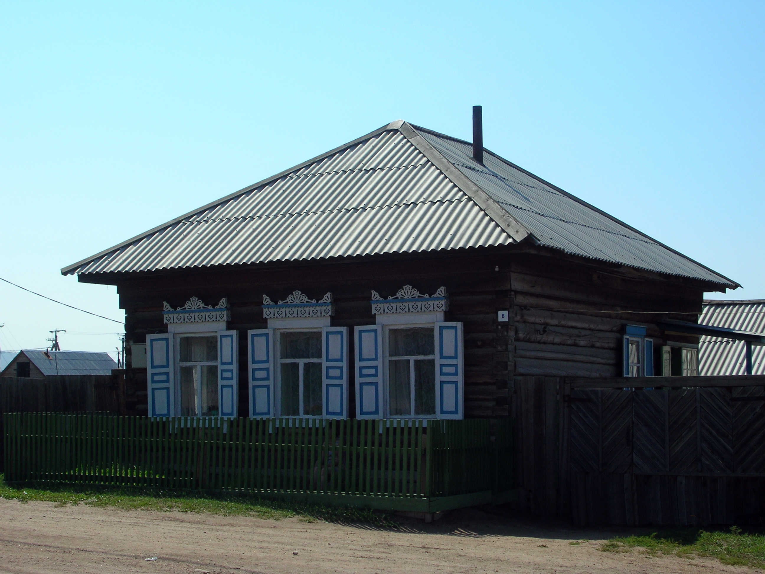 Wooden homes with window shutters that were all painted blue, corrugated tin roofs and green picket fences lined the main road.