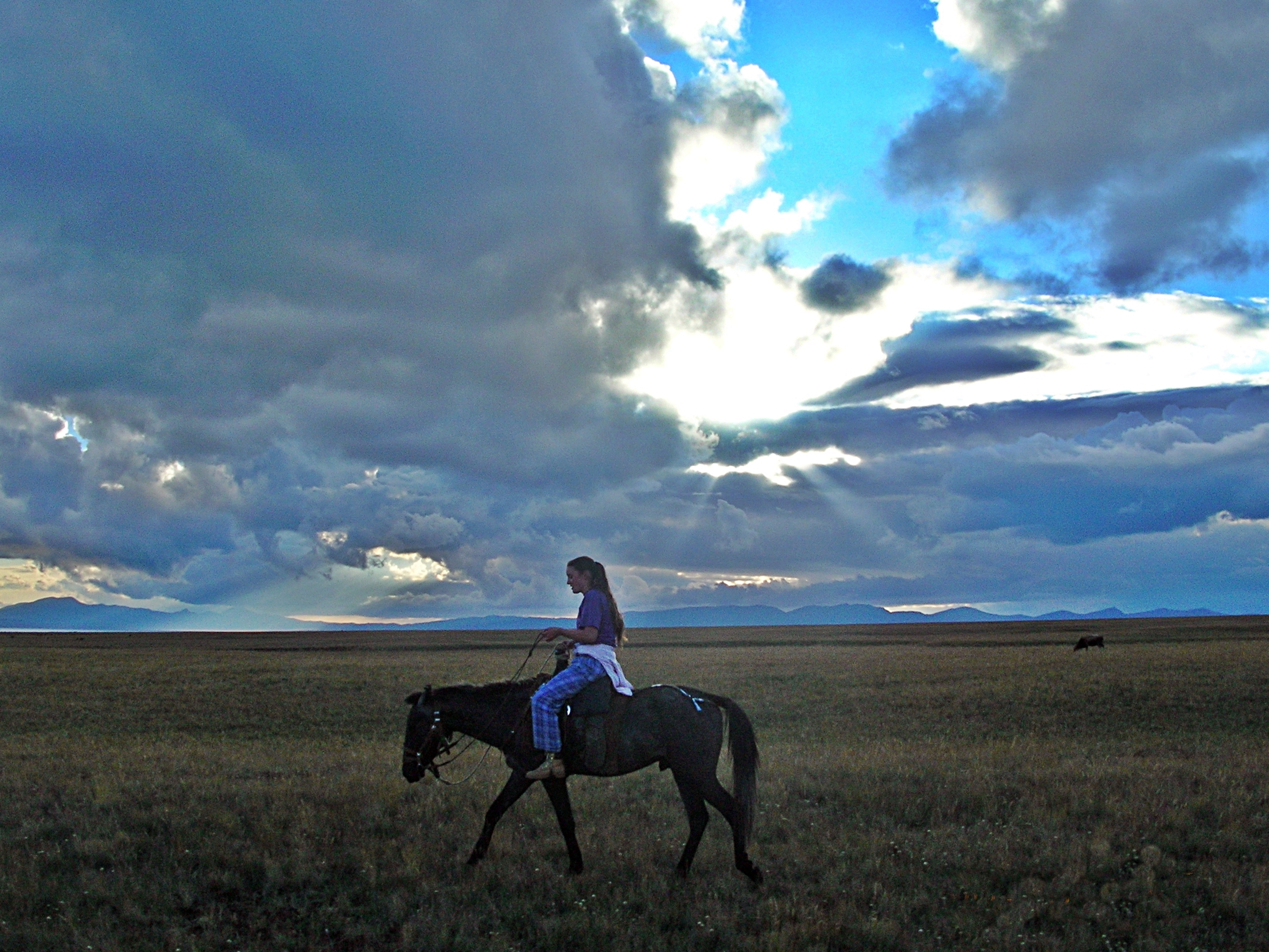 We sailed on into the pink and violet sunset, fleeing the menacing skies behind us.