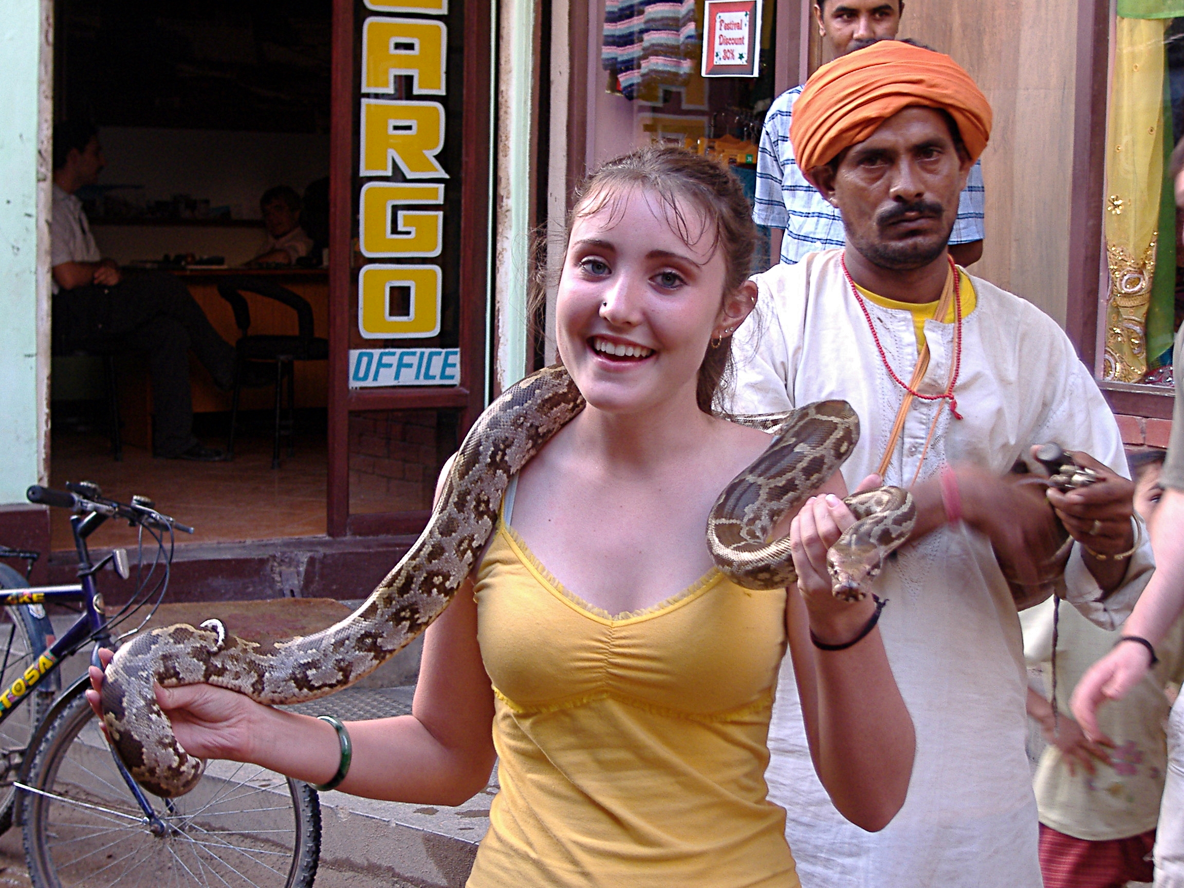 I accepted the challenge, easily taking command of the snake and draping him around my neck and over my shoulders like a shawl.